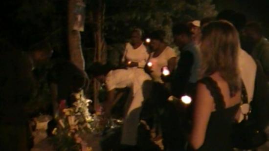 Dépôt de fleurs, de gerbes et de bougies.